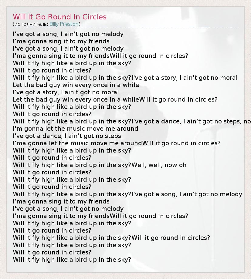 I'ma gonna sing it to my friendsWill it go round in circles?