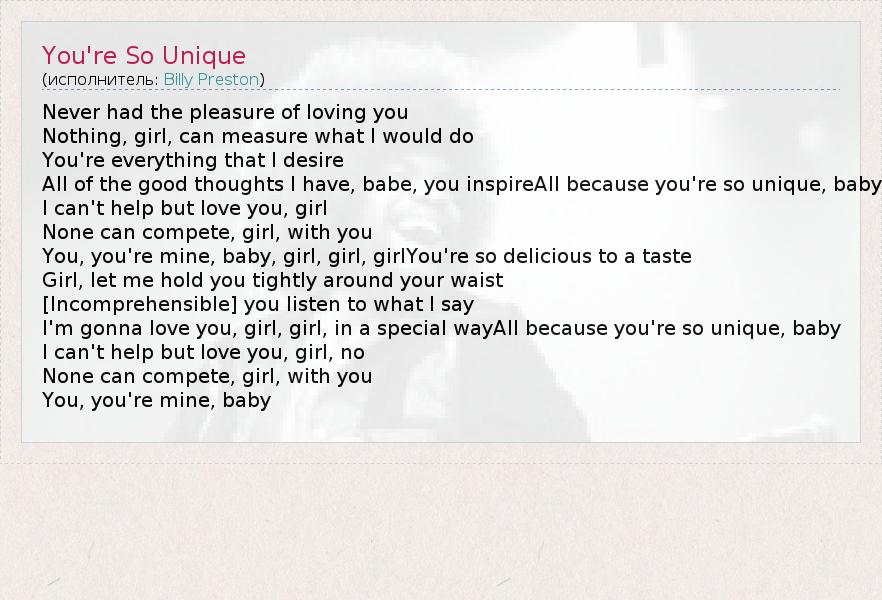 А как ты думаешь, о чем песня "You're So Unique" ?
