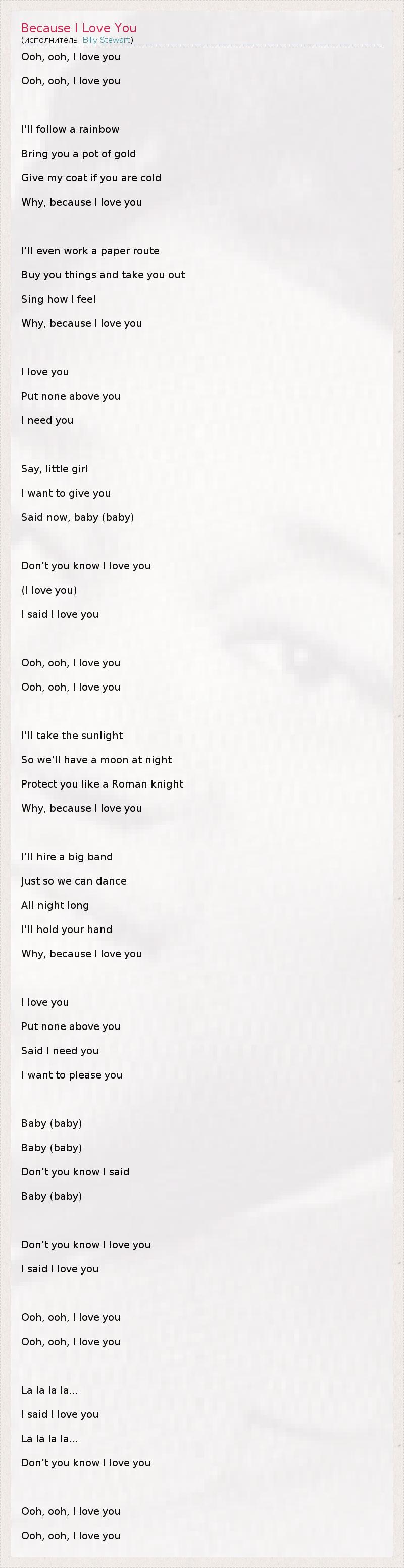А как ты думаешь, о чем песня "Because I Love You" ?