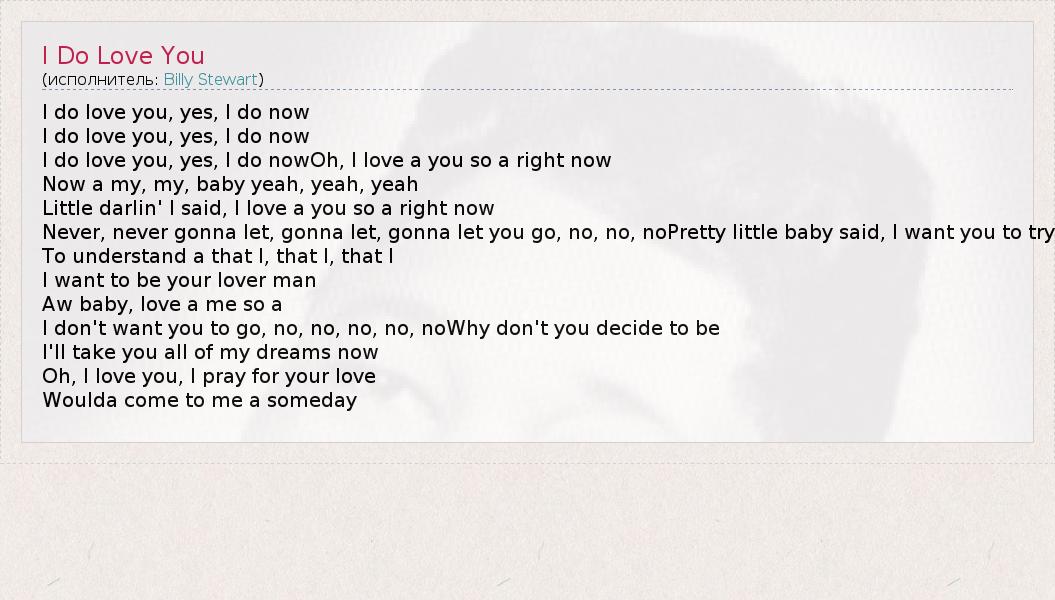 А как ты думаешь, о чем песня "I Do Love You" ?