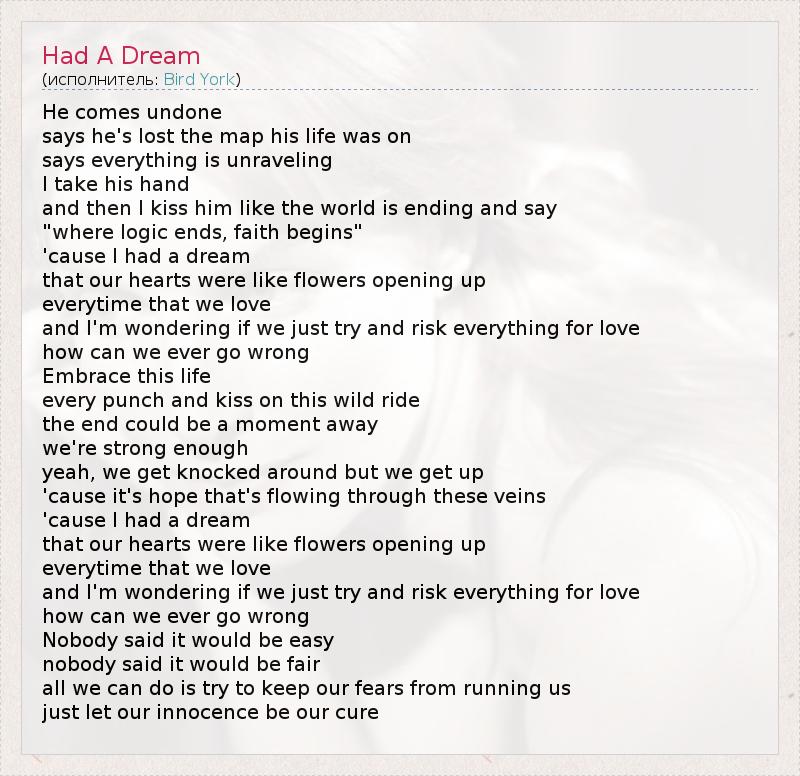 А как ты думаешь, о чем песня "Had A Dream" ?