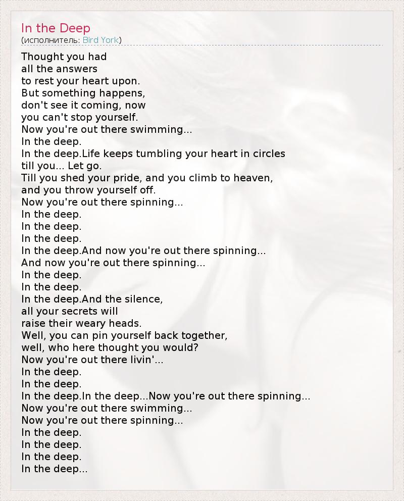 А как ты думаешь, о чем песня "In the Deep" ?