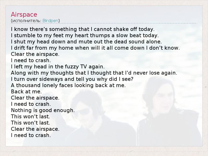 А как ты думаешь, о чем песня "Airspace" ?