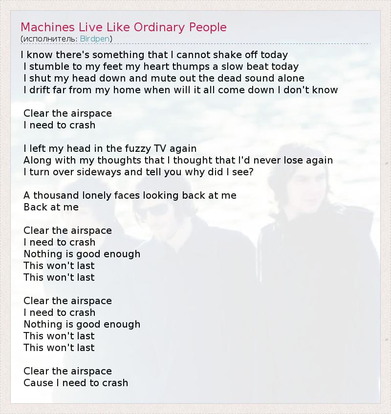 ГлавнаяИсполнителиBirdpenMachines Live Like Ordinary People