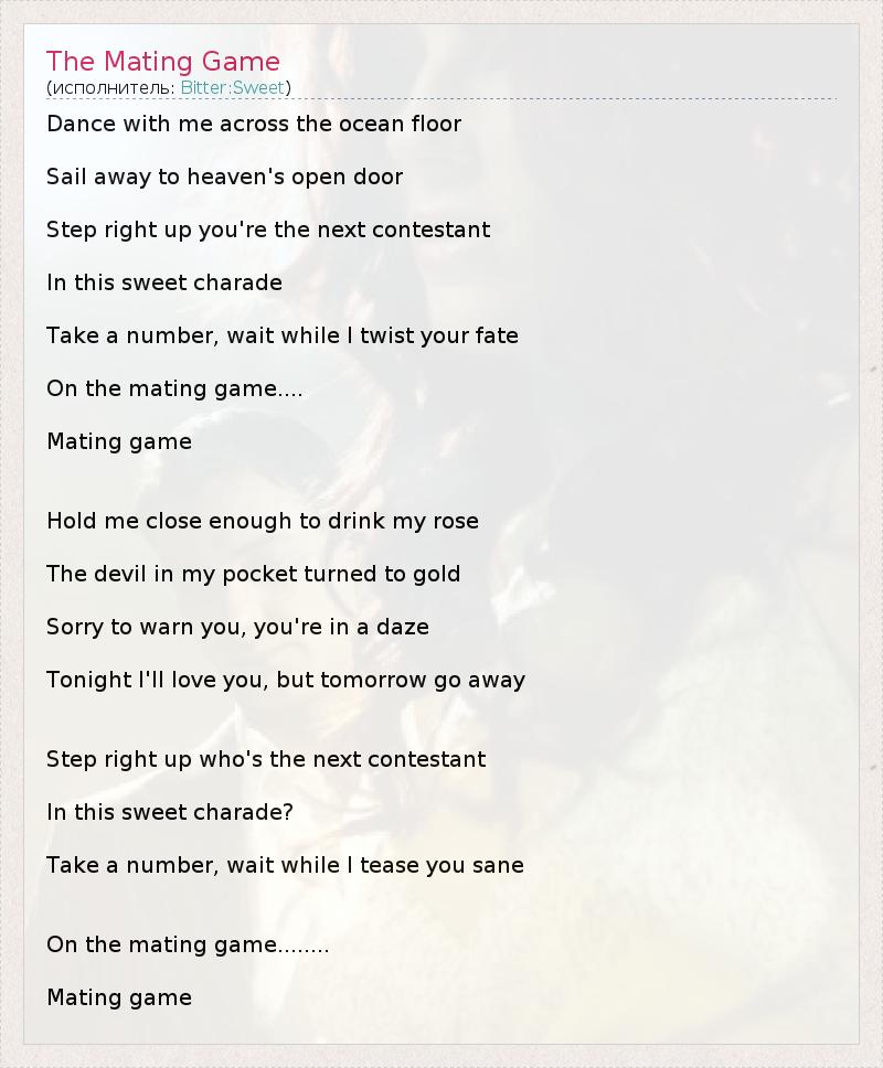А как ты думаешь, о чем песня "The Mating Game" ?