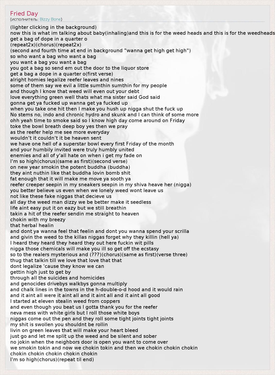 А как ты думаешь, о чем песня "Fried Day" ?