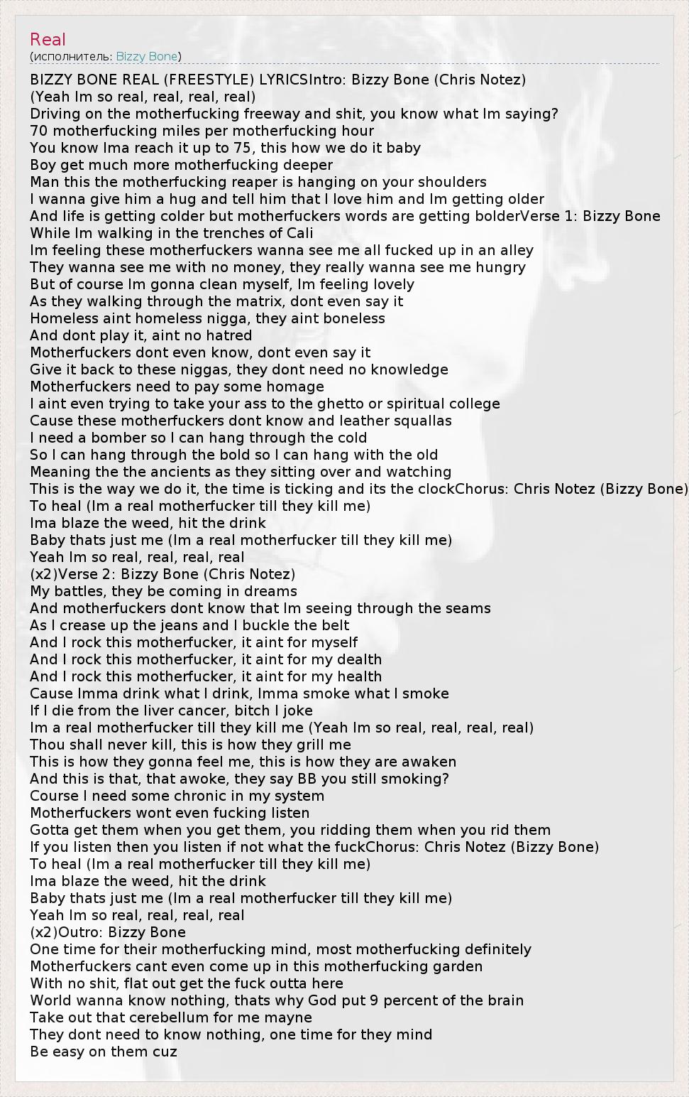 BIZZY BONE REAL (FREESTYLE) LYRICSIntro: Bizzy Bone (Chris Notez)