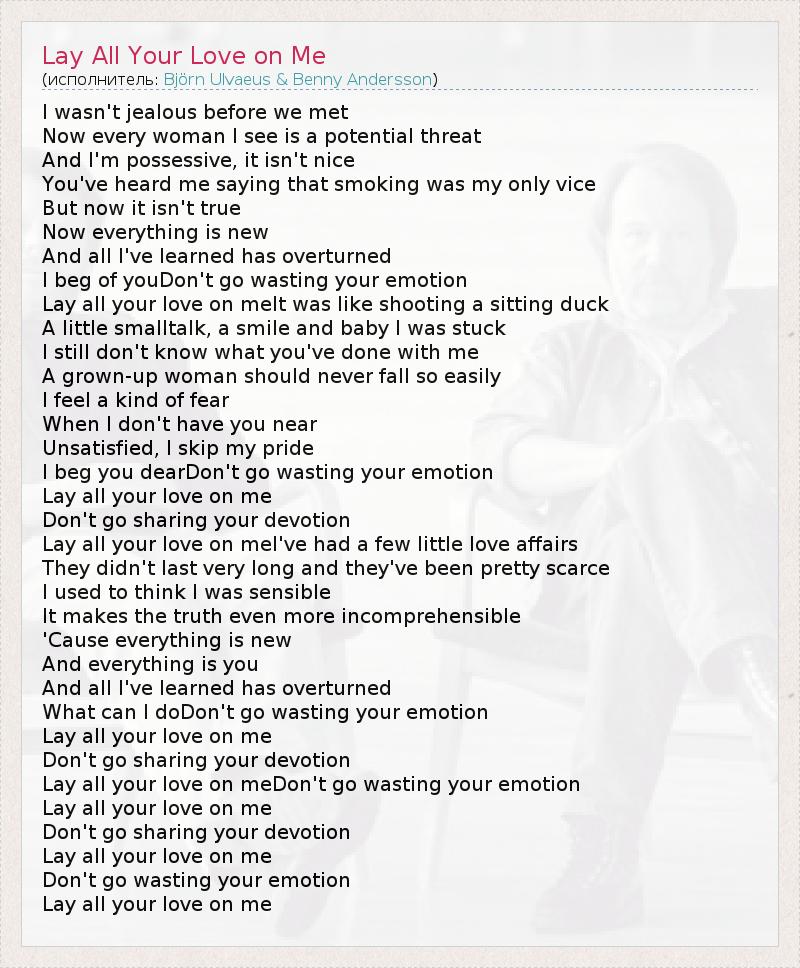 А как ты думаешь, о чем песня "Lay All Your Love on Me" ?