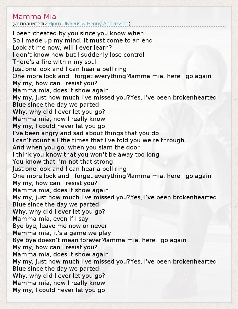 А как ты думаешь, о чем песня "Mamma Mia" ?