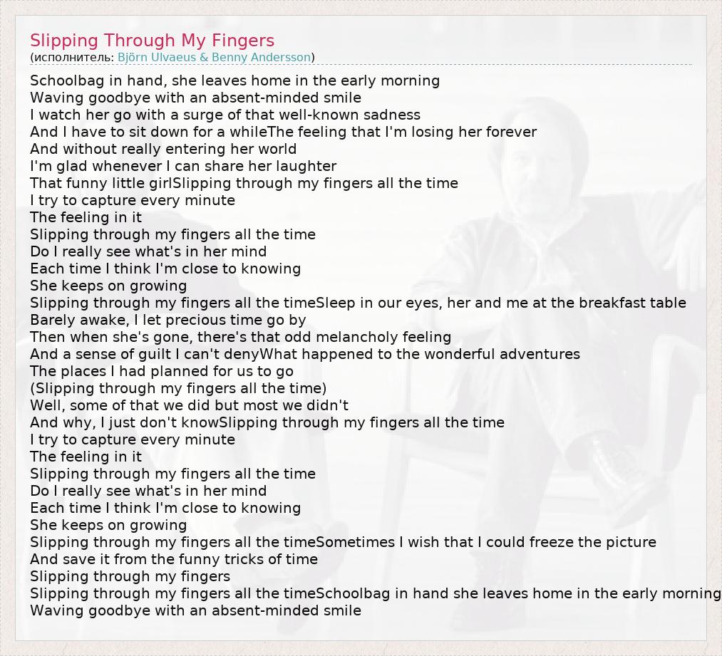 А как ты думаешь, о чем песня "Slipping Through My Fingers" ?