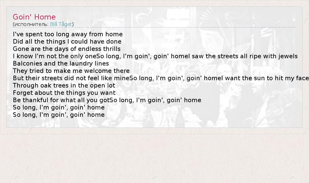 А как ты думаешь, о чем песня "Goin' Home" ?