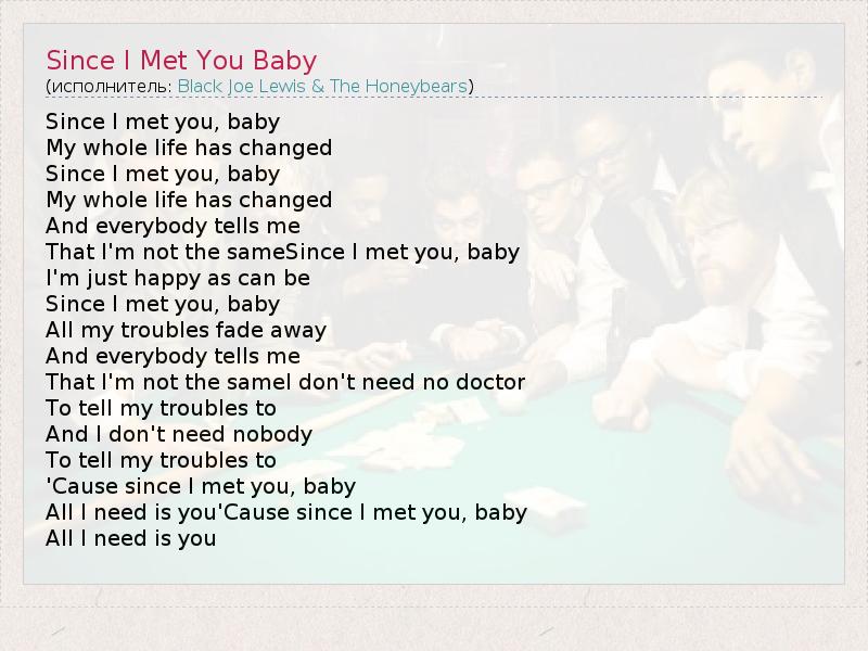 А как ты думаешь, о чем песня "Since I Met You Baby" ?