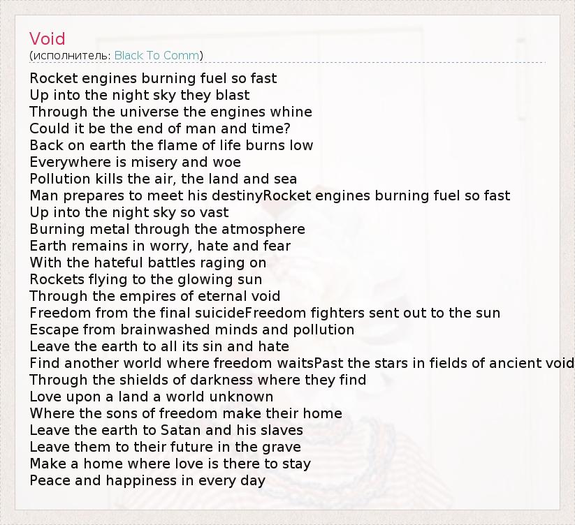 А как ты думаешь, о чем песня "Void" ?
