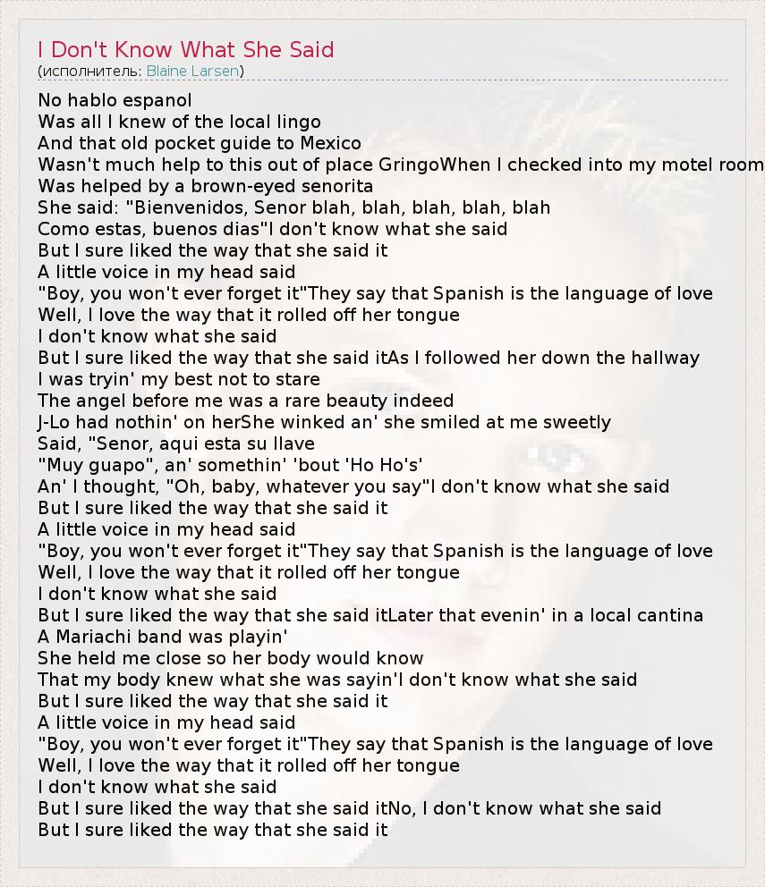 ГлавнаяИсполнителиBlaine LarsenI Don't Know What She Said