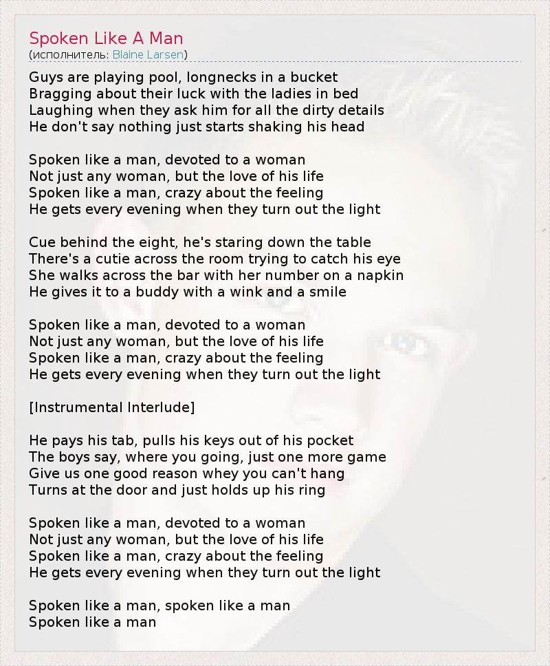 А как ты думаешь, о чем песня "Spoken Like A Man" ?