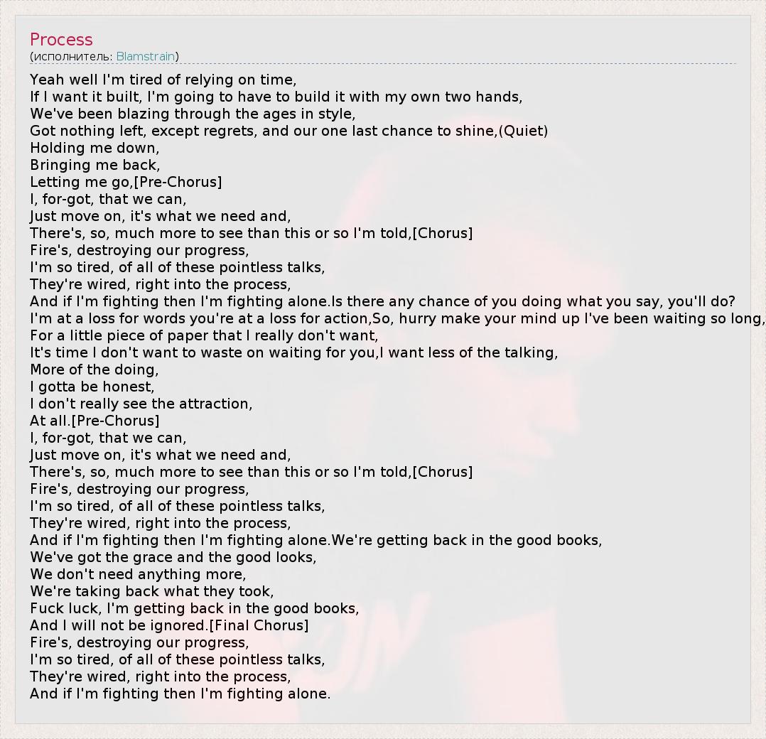 And if I'm fighting then I'm fighting alone.We're getting back in the good books,