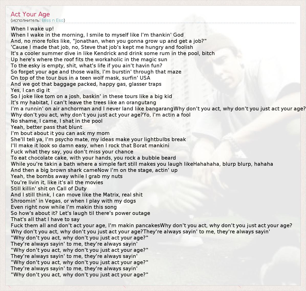 А как ты думаешь, о чем песня "Act Your Age" ?