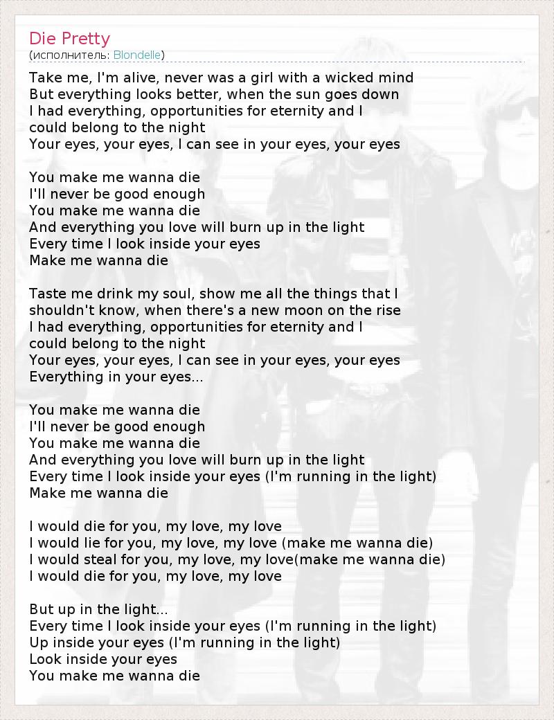 А как ты думаешь, о чем песня "Die Pretty" ?