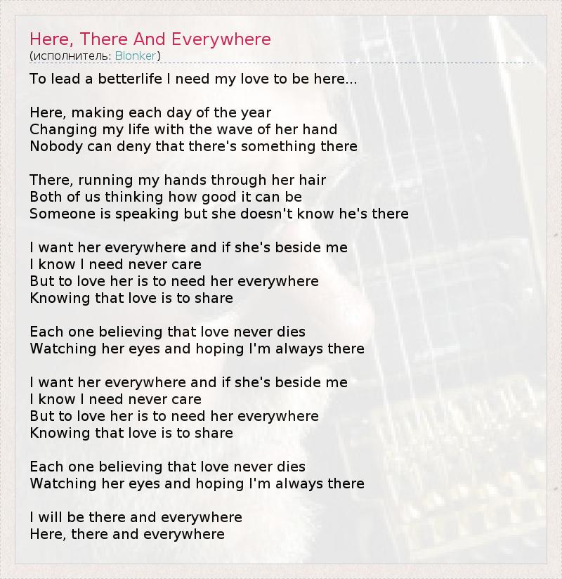 А как ты думаешь, о чем песня "Here, There And Everywhere" ?