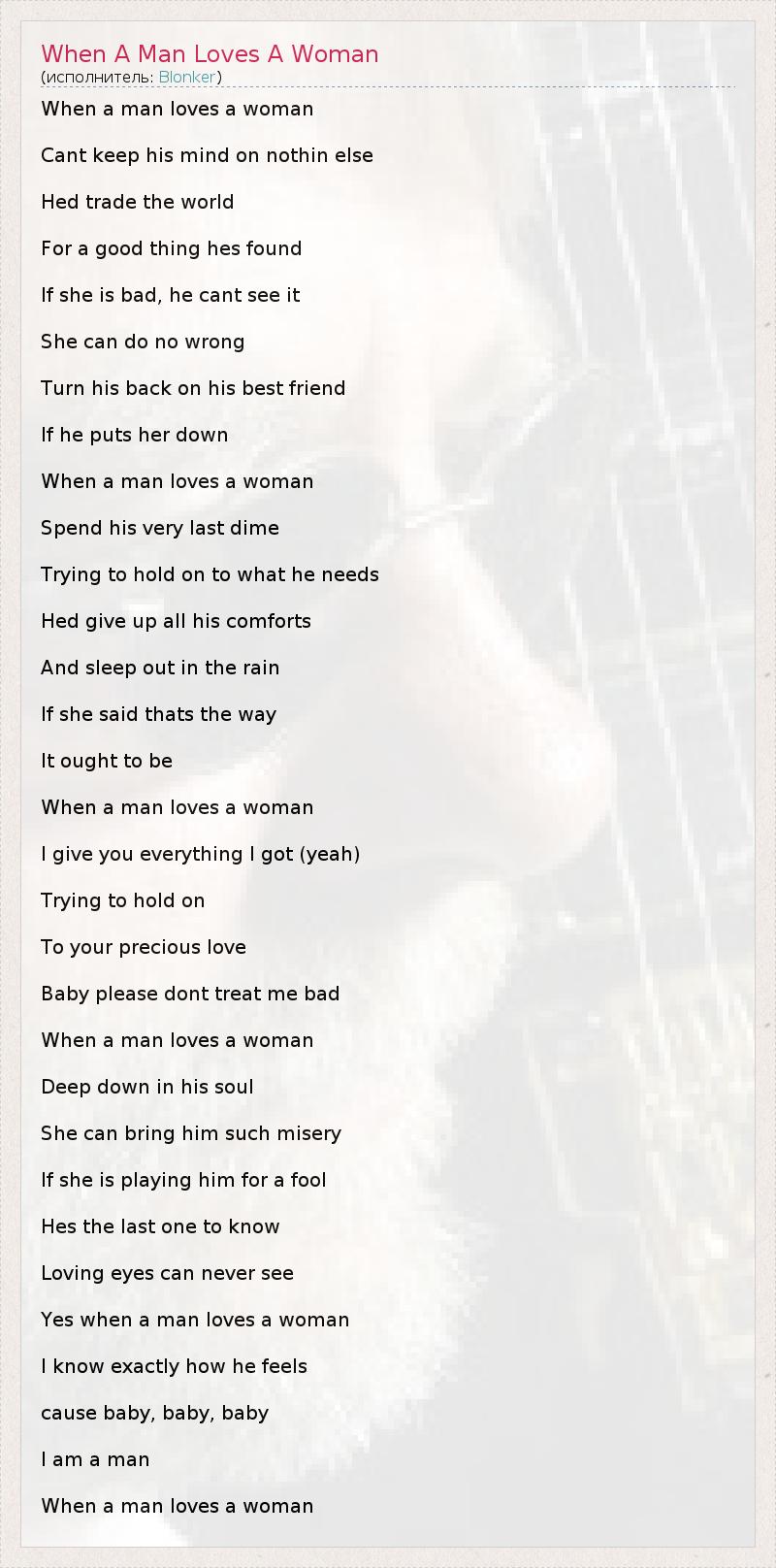 А как ты думаешь, о чем песня "When A Man Loves A Woman" ?