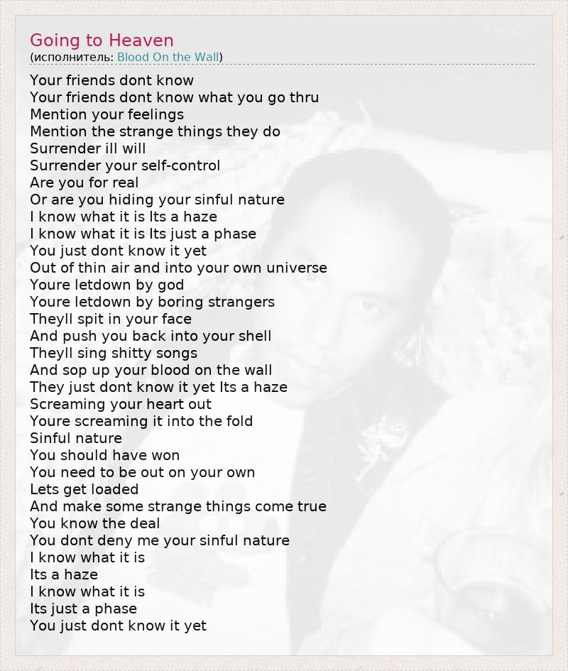 А как ты думаешь, о чем песня "Going to Heaven" ?