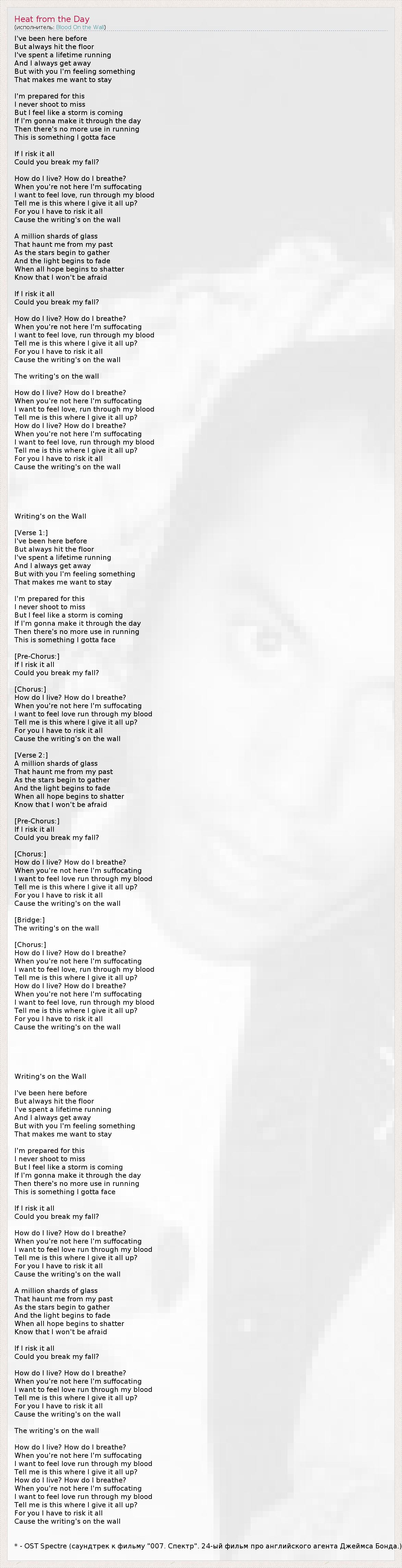 А как ты думаешь, о чем песня "Heat from the Day" ?