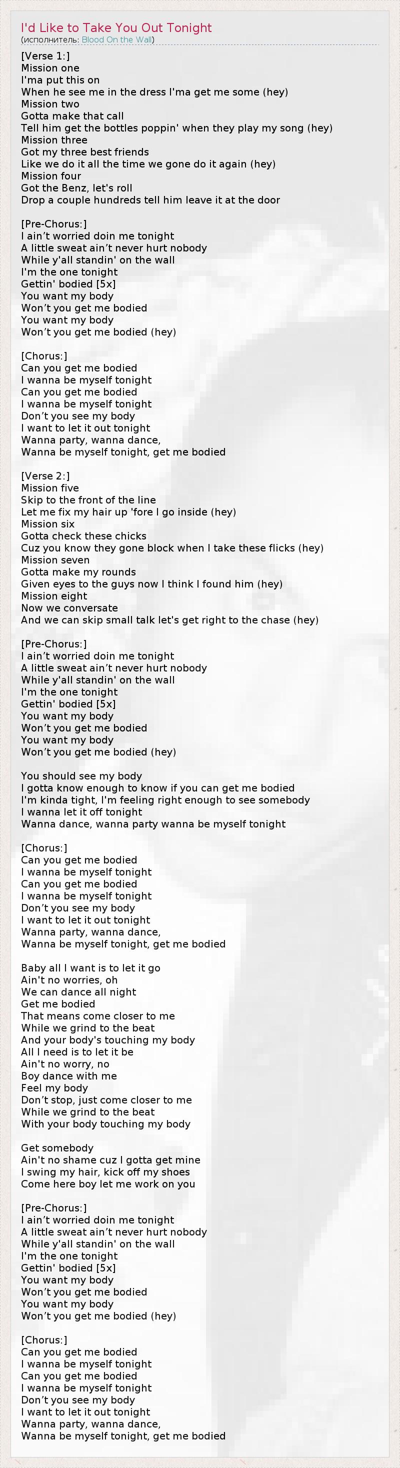 ГлавнаяИсполнителиBlood On the WallI'd Like to Take You Out Tonight