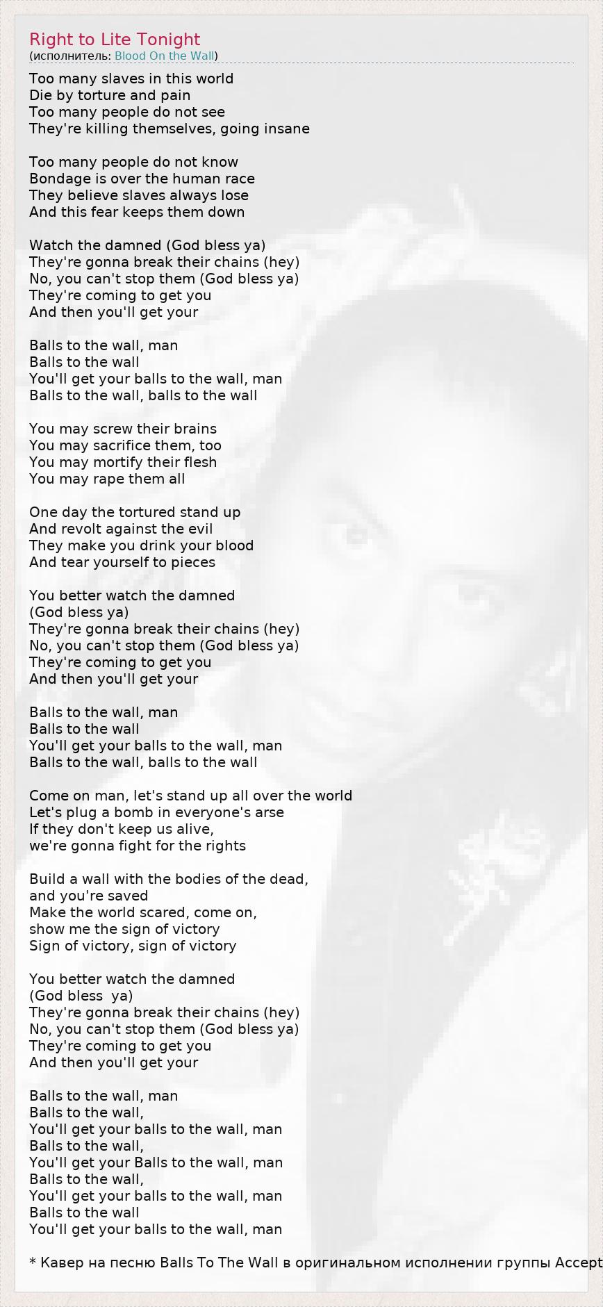 * Кавер на песню Balls To The Wall в оригинальном исполнении группы Accept