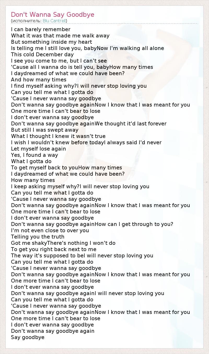 А как ты думаешь, о чем песня "Don't Wanna Say Goodbye" ?