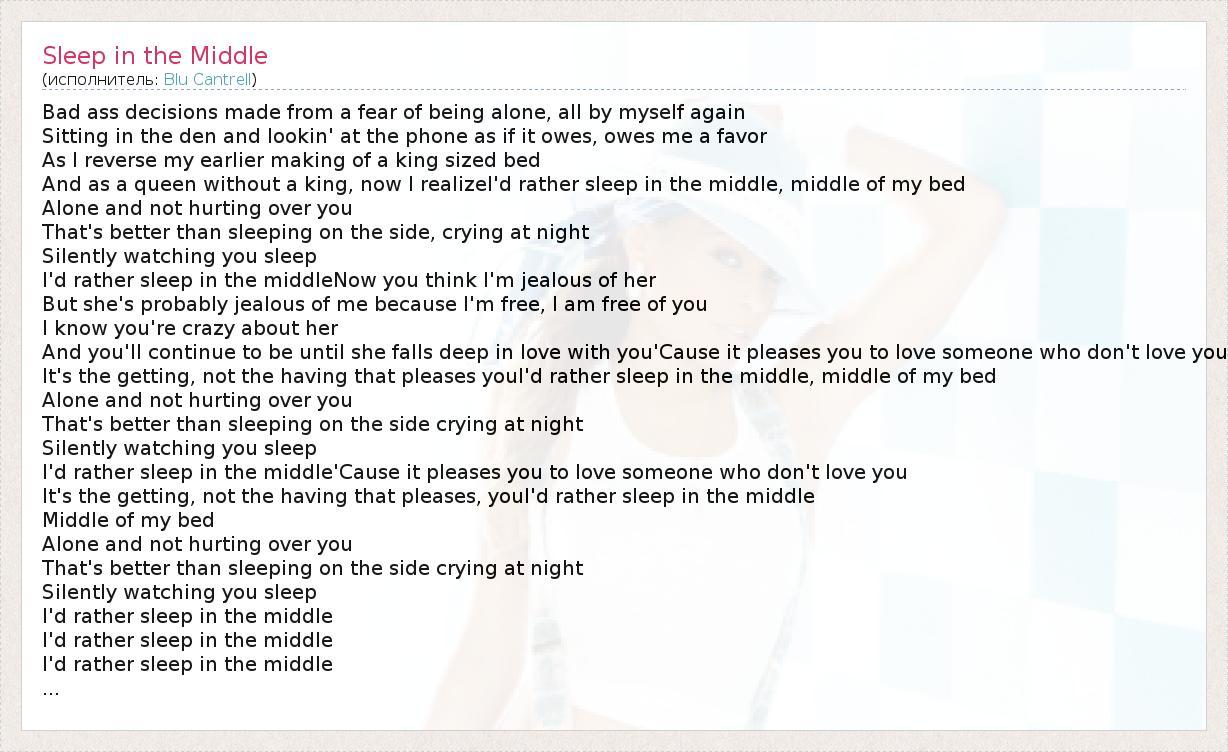 I'd rather sleep in the middleNow you think I'm jealous of her