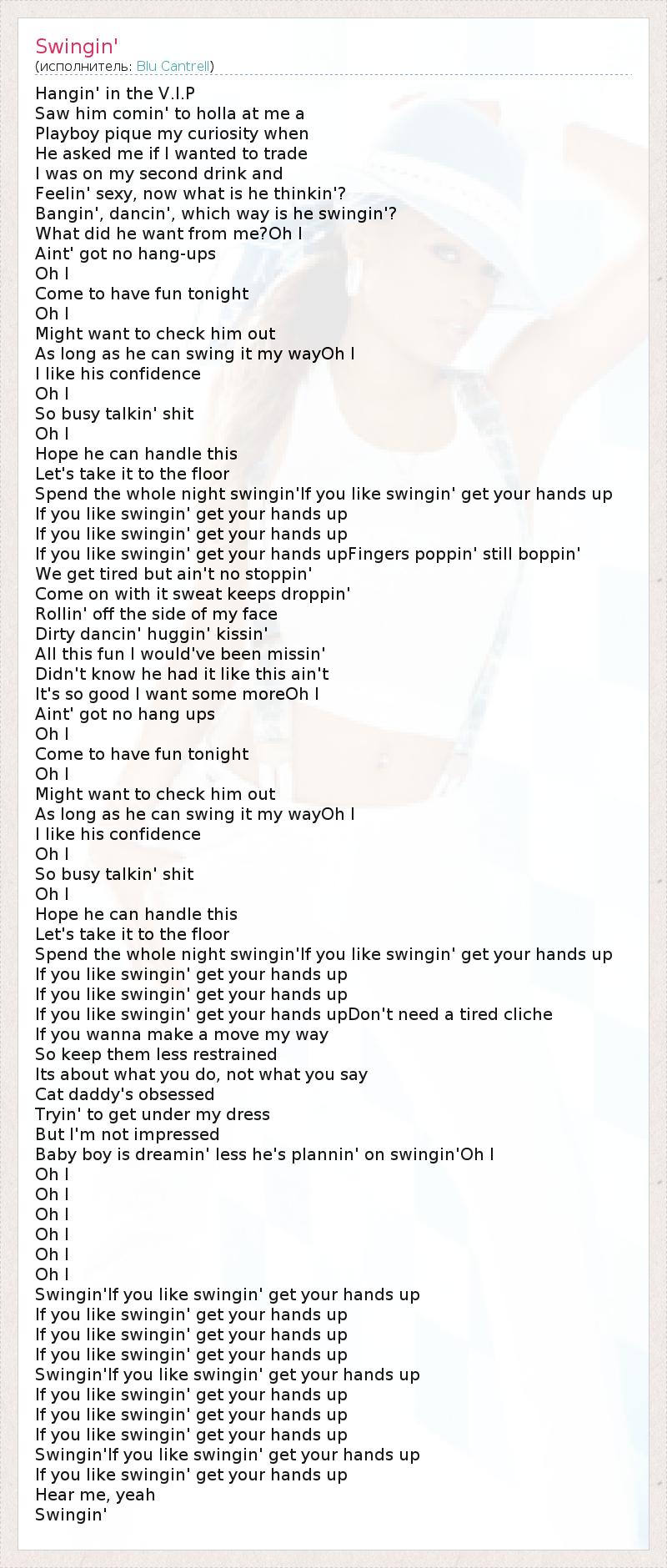 If you like swingin' get your hands upFingers poppin' still boppin'