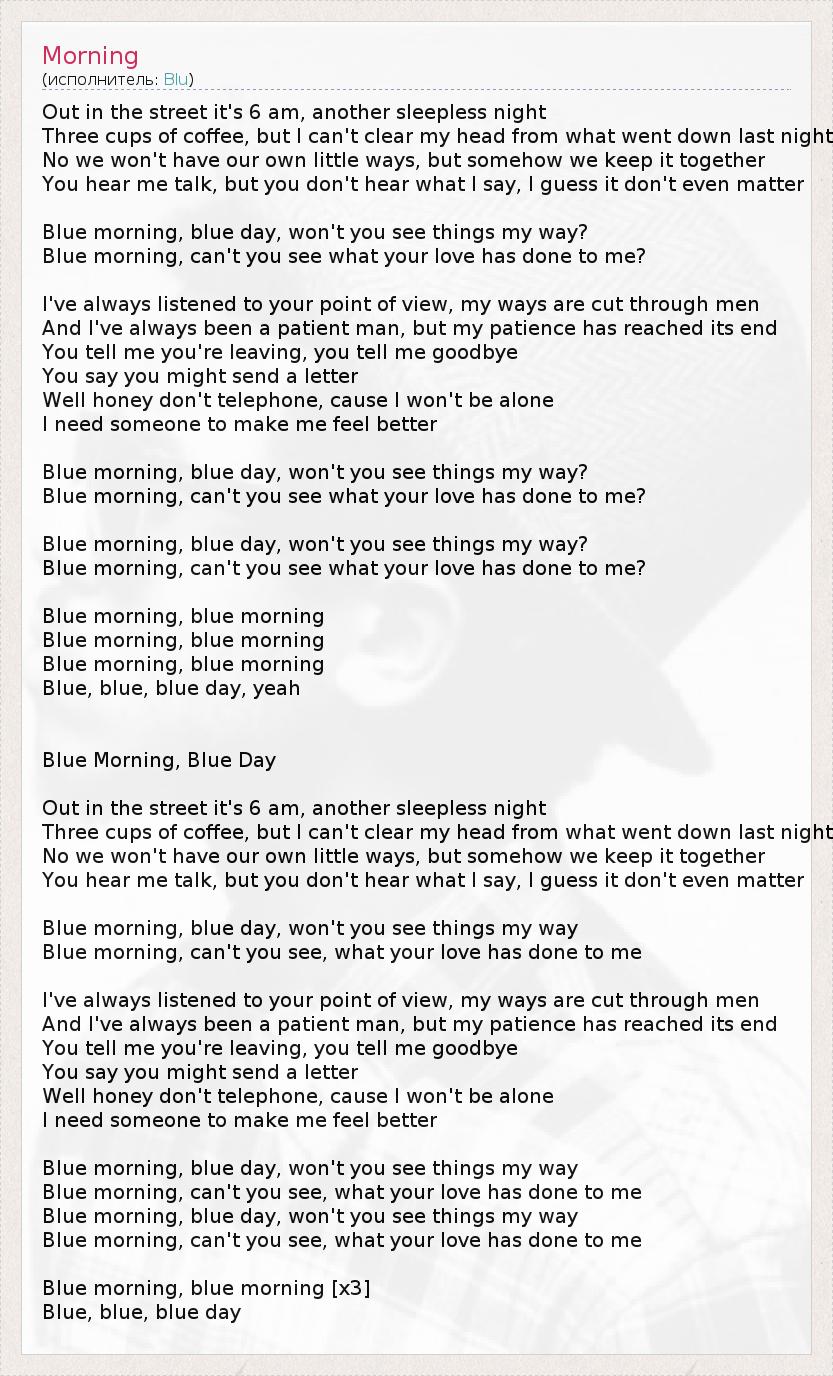 Грустное утро, грустный день, увидишь, как всё есть, по-моему?