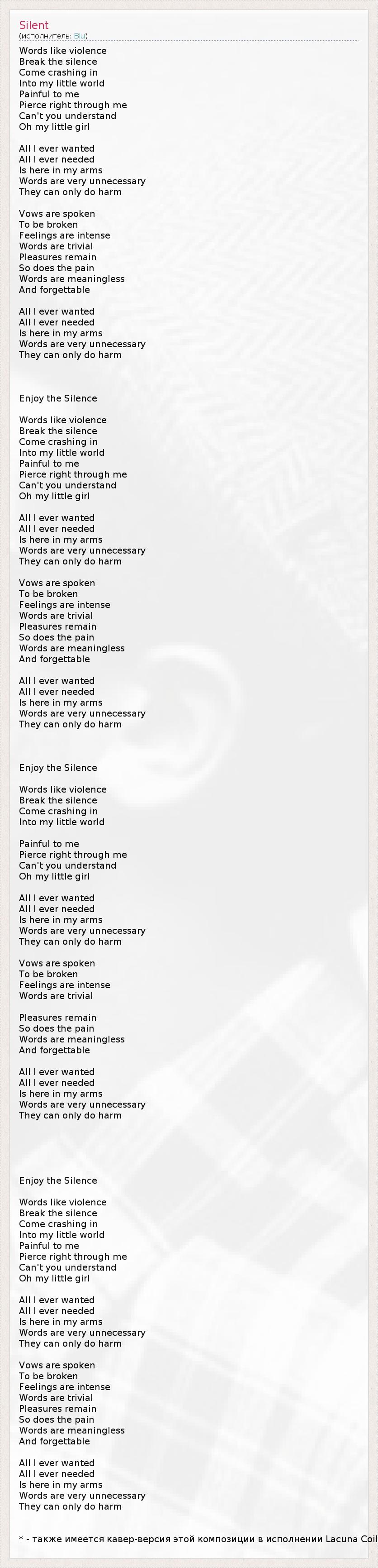 Наслаждайся тишиной (перевод Натальи Павловны из С-Петербурга)