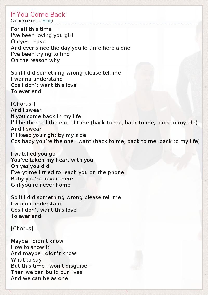 А как ты думаешь, о чем песня "If You Come Back" ?