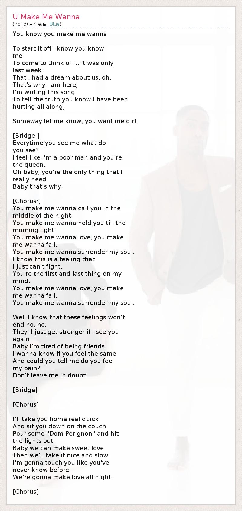 А как ты думаешь, о чем песня "U Make Me Wanna" ?