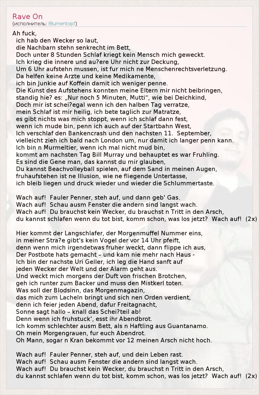 Wach auf!  Schau ausm Fenster die andern sind langst wach.