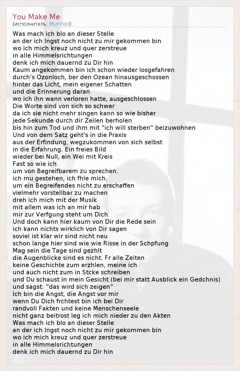 А как ты думаешь, о чем песня "You Make Me" ?