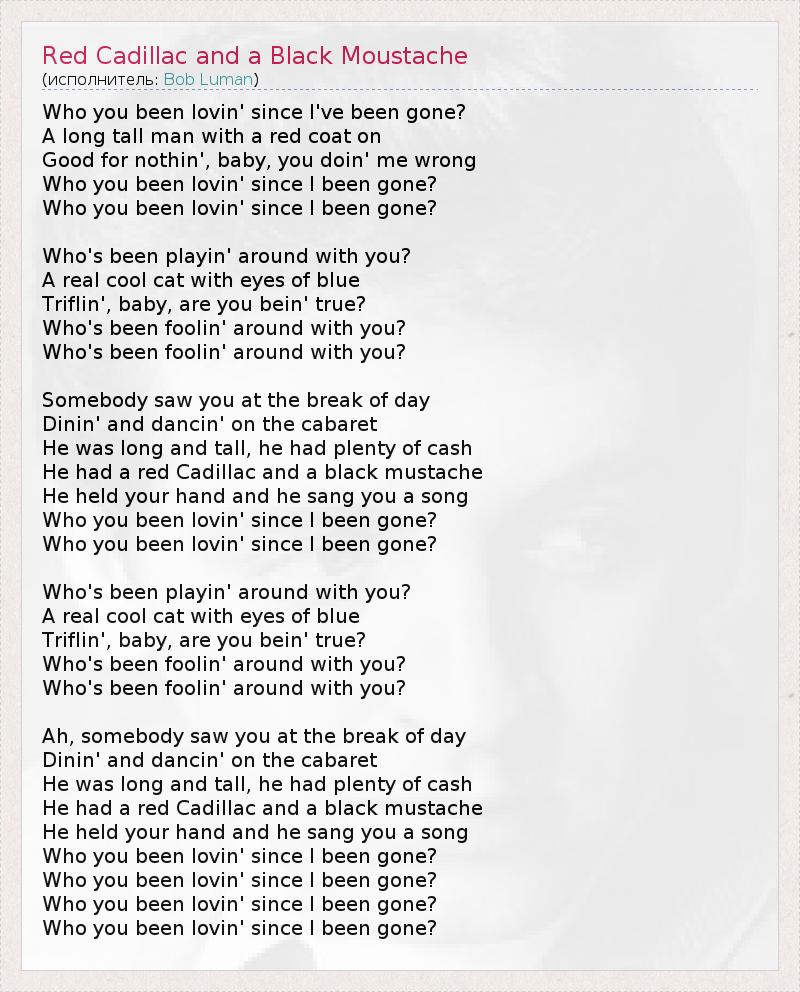 А как ты думаешь, о чем песня "Red Cadillac and a Black Moustache" ?