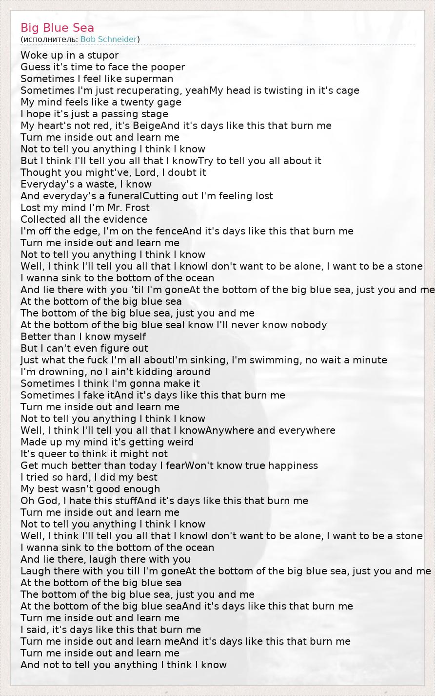 А как ты думаешь, о чем песня "Big Blue Sea" ?