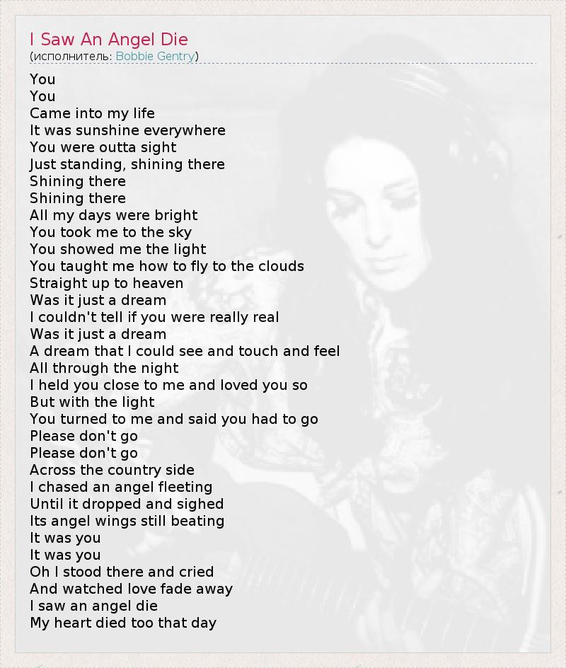 А как ты думаешь, о чем песня "I Saw An Angel Die" ?