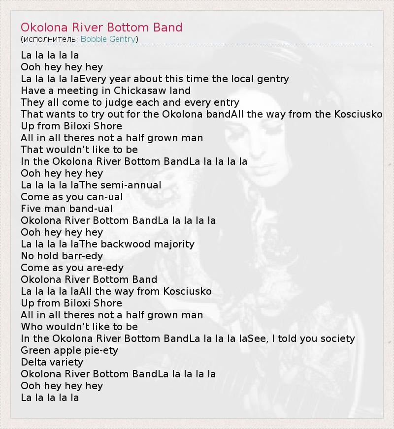 А как ты думаешь, о чем песня "Okolona River Bottom Band" ?