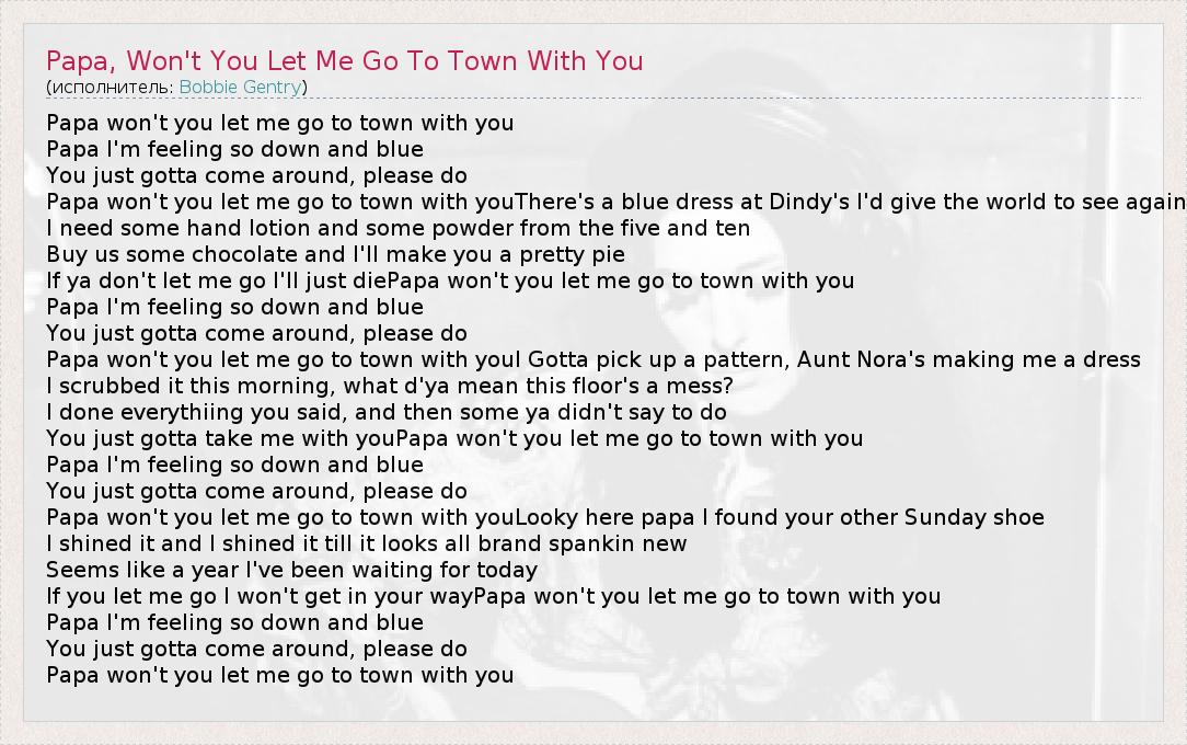ГлавнаяИсполнителиBobbie GentryPapa, Won't You Let Me Go To Town With You