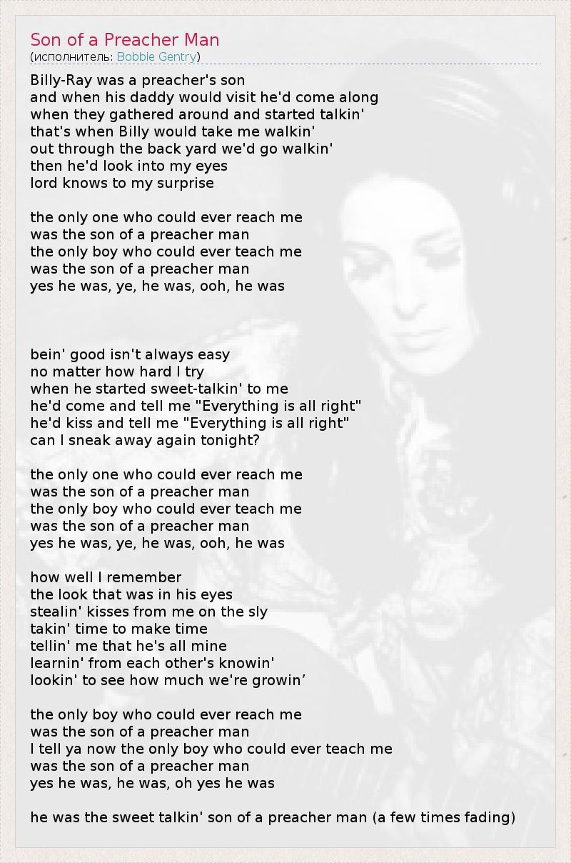 А как ты думаешь, о чем песня "Son of a Preacher Man" ?