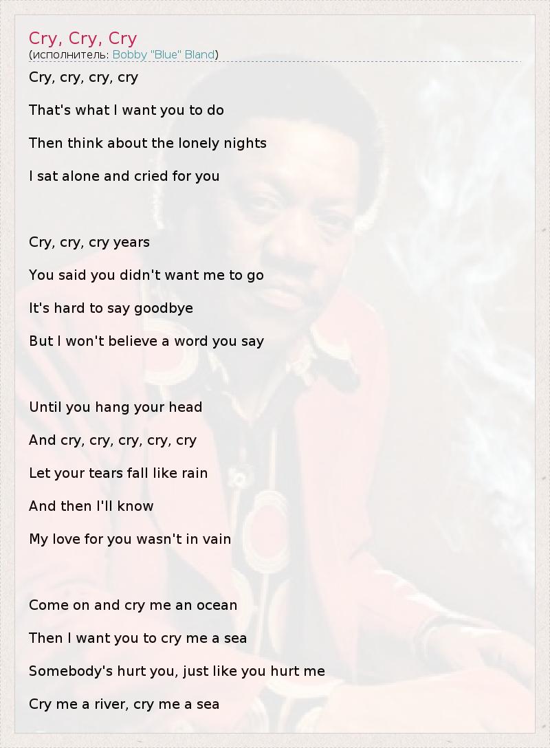 А как ты думаешь, о чем песня "Cry, Cry, Cry" ?