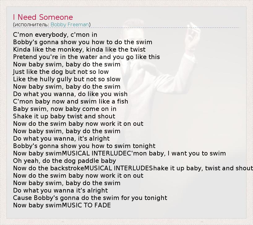 А как ты думаешь, о чем песня "I Need Someone" ?