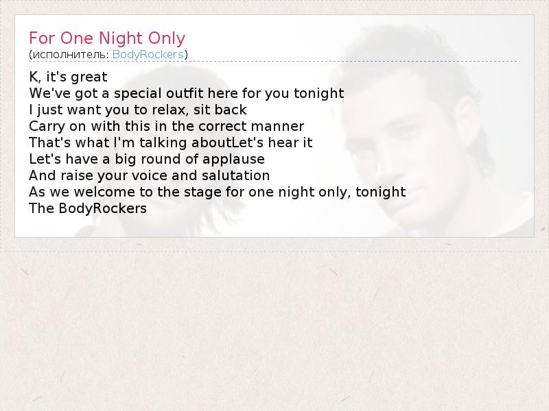 А как ты думаешь, о чем песня "For One Night Only" ?