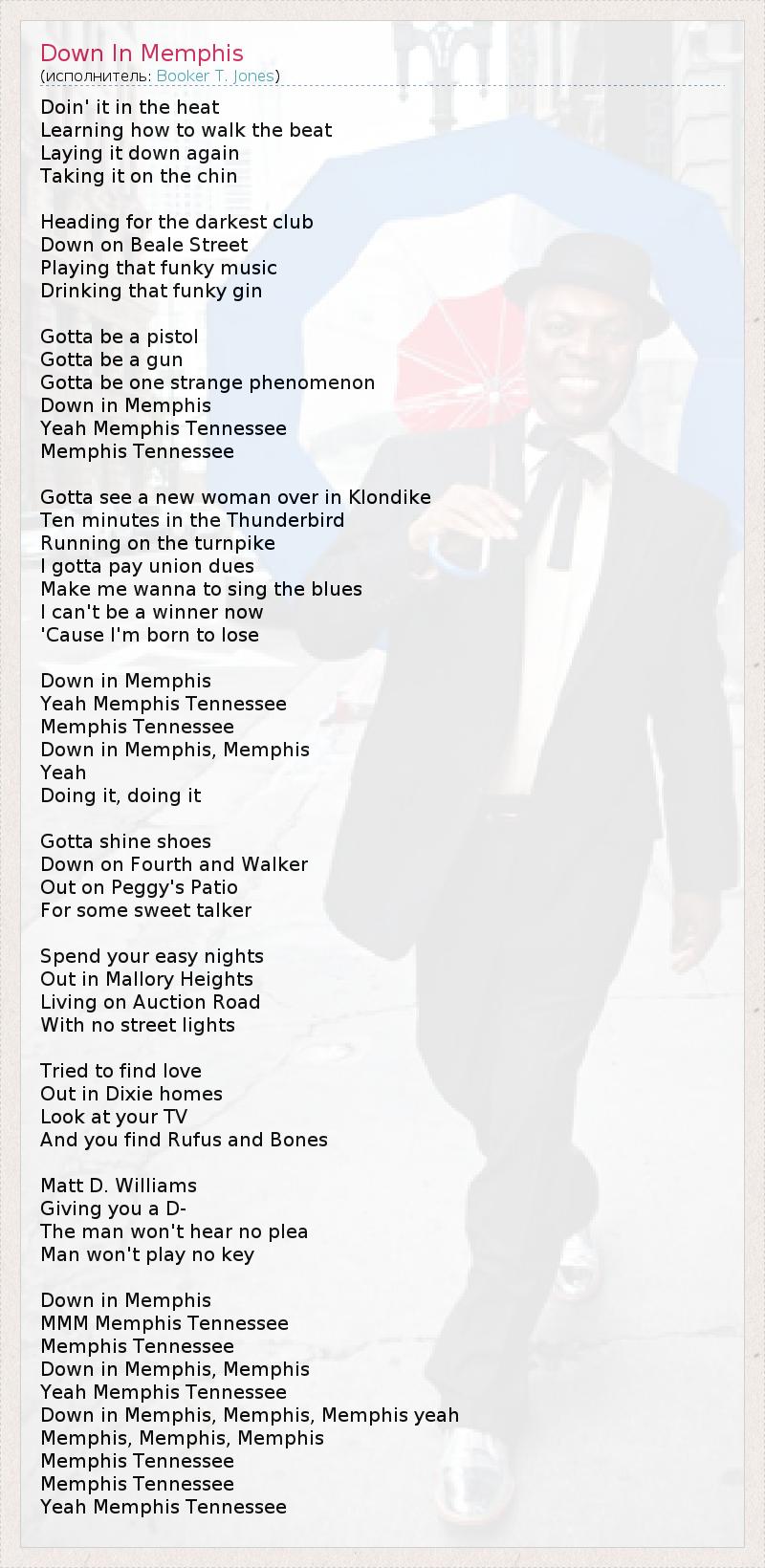 А как ты думаешь, о чем песня "Down In Memphis" ?