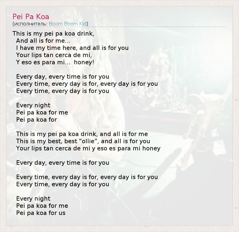 А как ты думаешь, о чем песня "Pei Pa Koa" ?