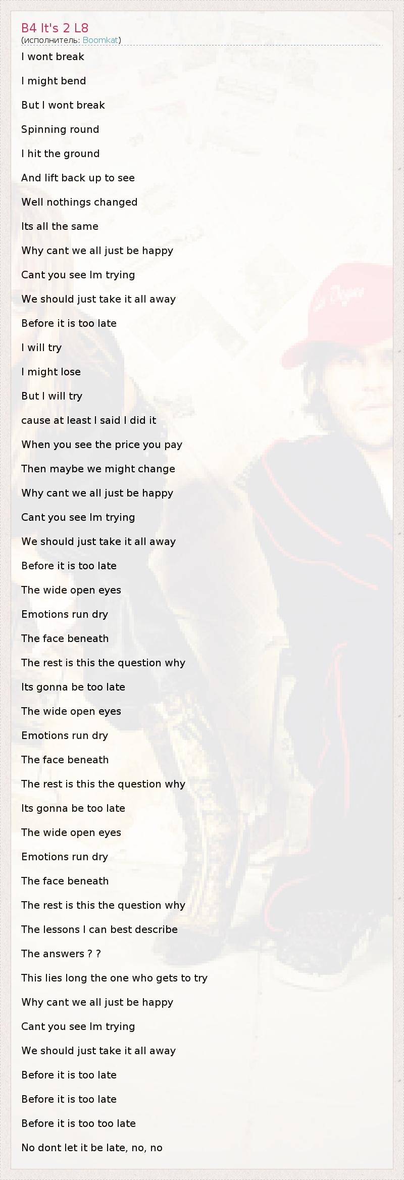 А как ты думаешь, о чем песня "B4 It's 2 L8" ?
