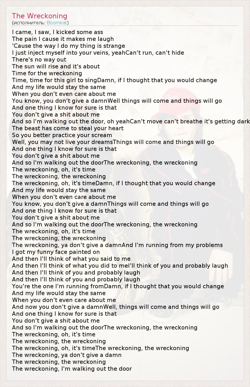 And so I'm walking out the doorThe wreckoning, the wreckoning